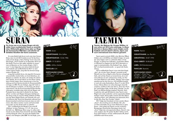 Das Kernstück dieses Buchs ist eine chronologische Übersicht aller relevanten Bands und Künstler, die seit 2004 den Planet K-Pop bevölkern. Akribisch ist aufgelistet, wann welche Gruppe gegründet wurde (und sich ggfs. getrennt hat), wer die Mitglieder sind und welche musikalischen Erfolge die Bands und Künstler feiern konnten. Dieses K-Pop-Kompendium mit seinen vielen (und komplett farbigen) Abbildungen dürfte weltweit einzigartig sein.