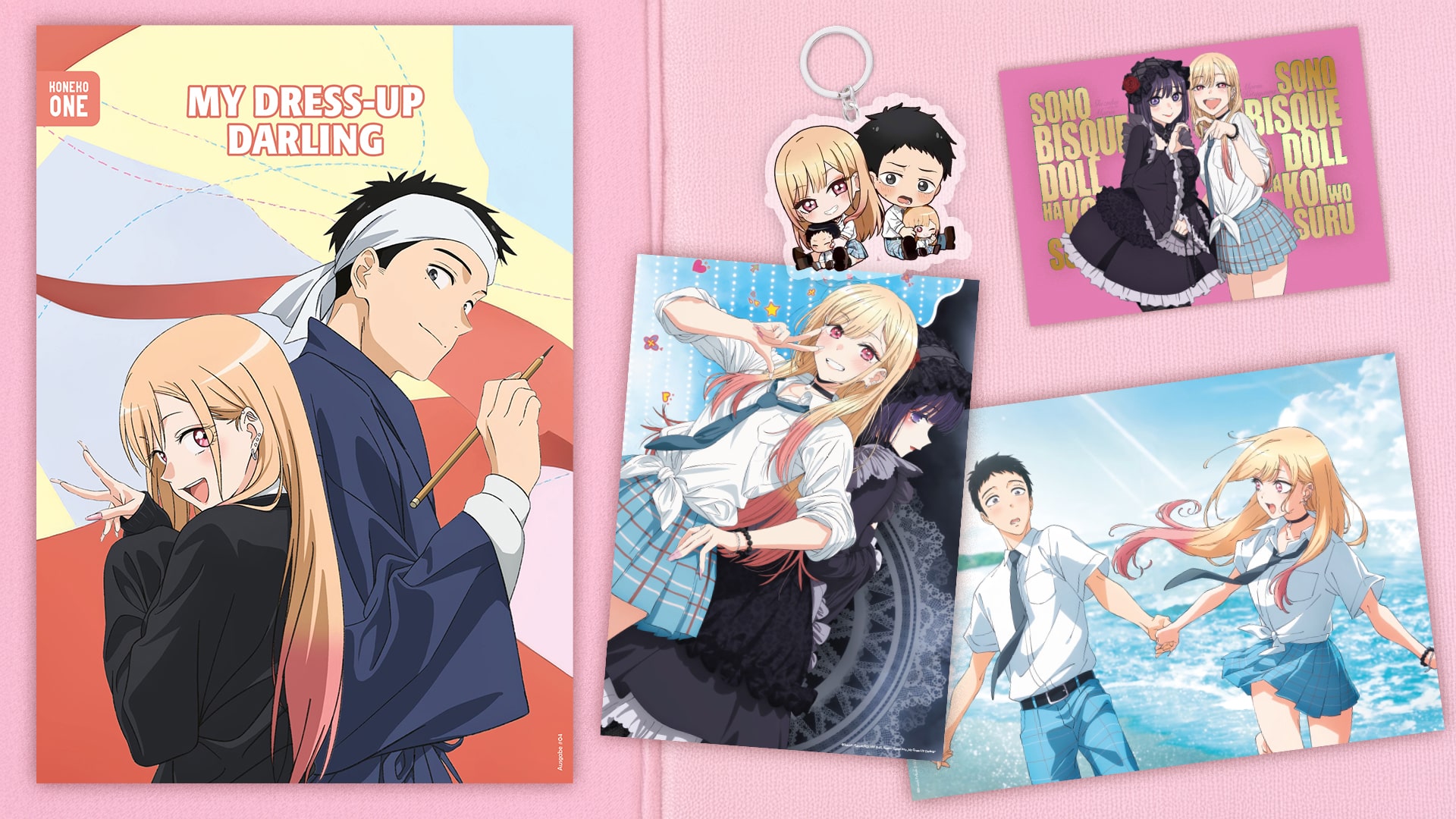 Die vierte Ausgabe von „Koneko ONE“ widmet sich der beliebten Serie „My Dress-Up Darling“ (Orig. „Sono Bisque Doll wa Koi o Suru“) und besteht aus einem kleinen Fact Guide, einem doppelseitig bedruckten Artprint, einer Sammel-Postkarte mit Metallic-Druck sowie einem Acryl-Schlüsselanhänger.
