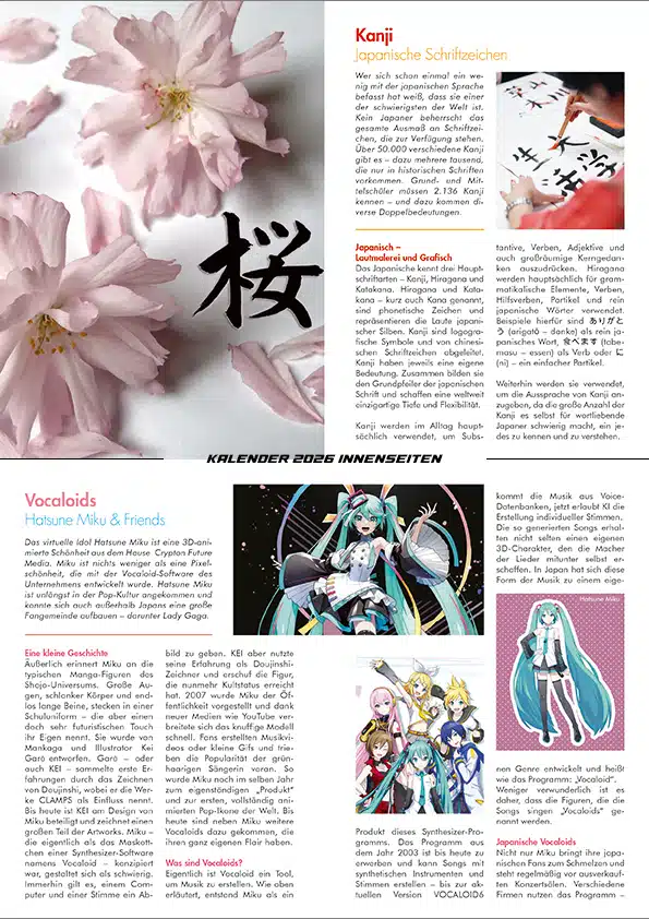 Taschenbuchkalender zum Thema japanische Popkultur