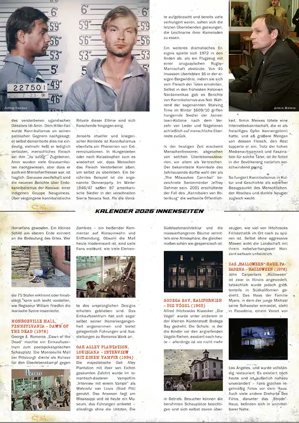 Falls du Horror Entertainment liebst, ist dieses 200-seitige, aufwendig produzierte Taschenbuch (Format: 15,4 cm x 10,8 cm x 1,9 cm, Flexcover, Lesebändchen, komplett farbig) dein perfekter Begleiter durch das kommende Jahr.